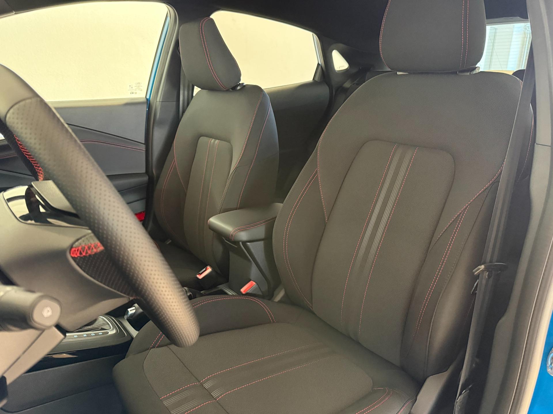 Innenausstattung Stoffpolsterung in Anthrazit mit Ziernähten in Rot