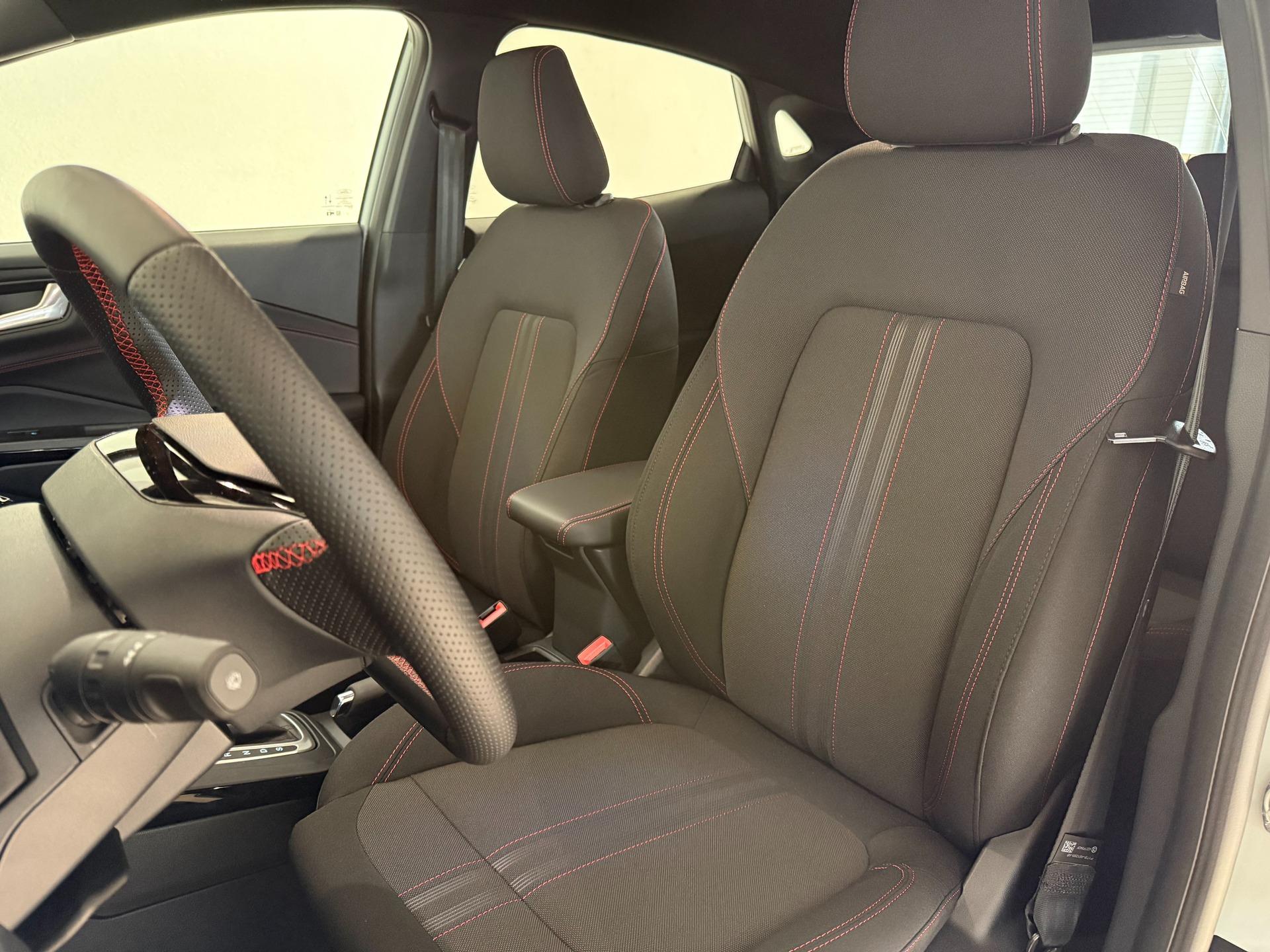 Innenausstattung Stoffpolsterung in Anthrazit mit Ziernähten in Rot
